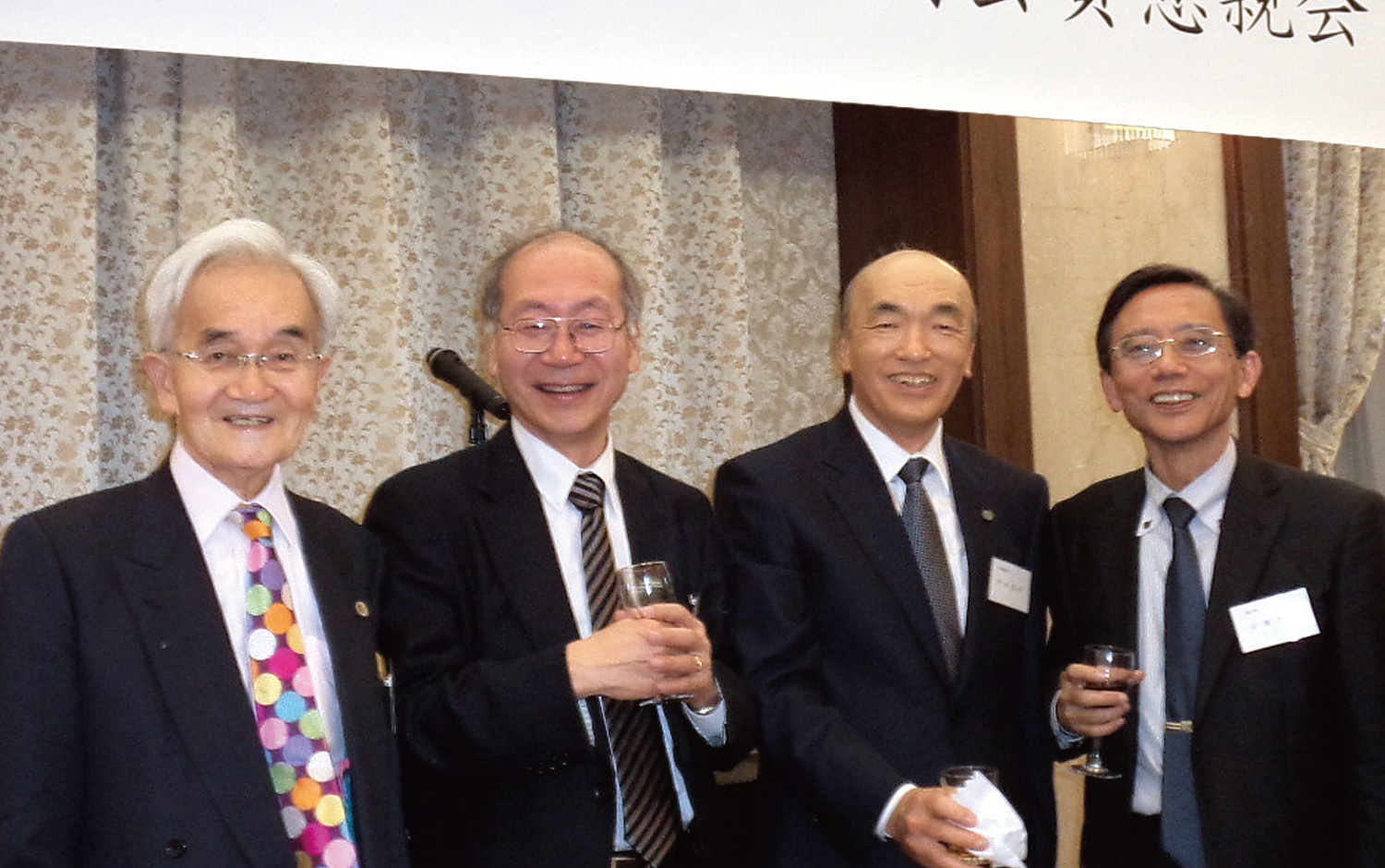 | 掲示総責・一ノ瀬辰治 顧問 気の知れた者勢揃い。左から赤塚、赤塚の元部下の検事総長、最高裁長官、前検事総長 |